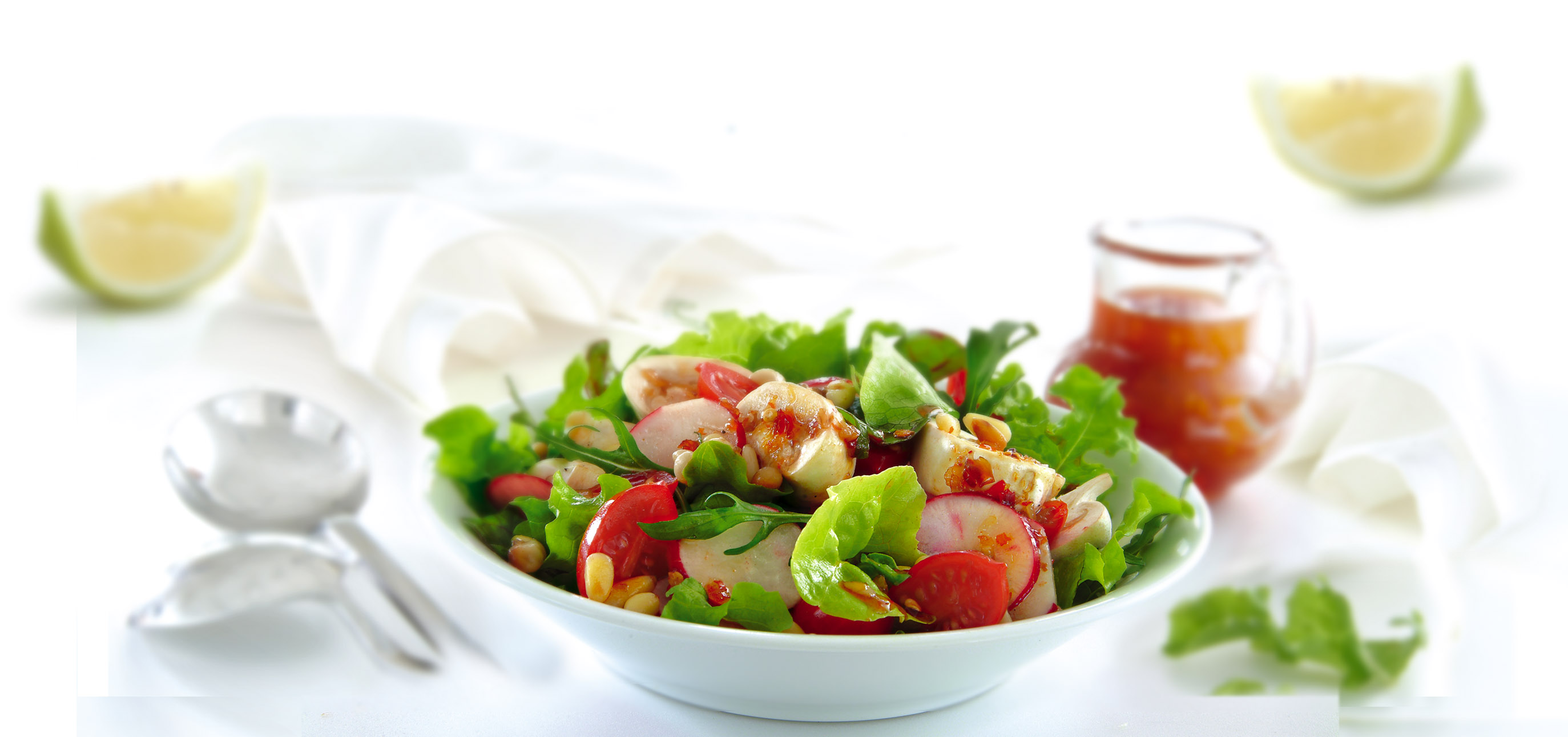 Super Ensalada: repollo blanco o Colorado en tiras, rabanitos, zanahorias, brotes soja, cebolla de verdeo, hojas de cilantro.